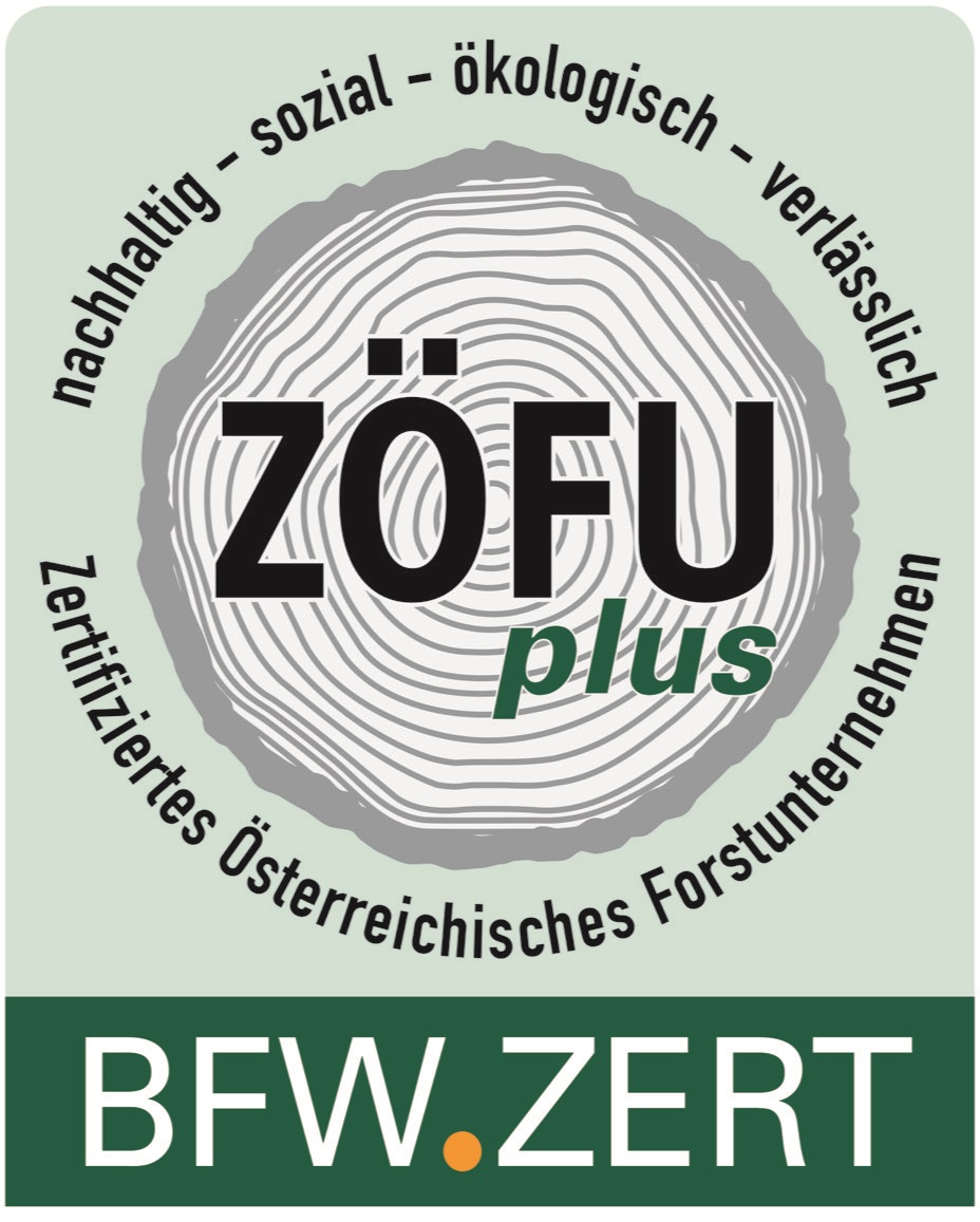 Seit 2025 ist das Unternehmen ZÖFU-plus zertifiziert. ZÖFU plus steht für Qualität, Verlässlichkeit und kontinuierliche Weiterentwicklung - vom Einschlag bis zur Rückung.
